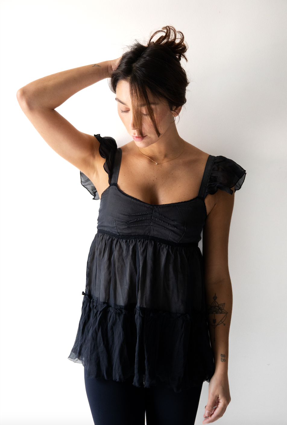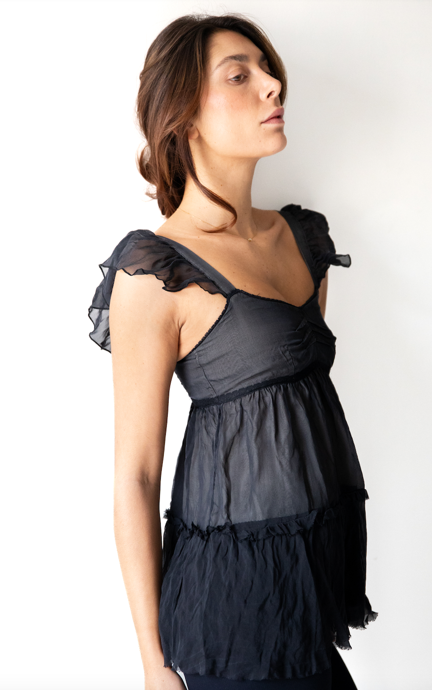 Vintage D&G Sheer Top – Grey with Ruffles and Fringe Details